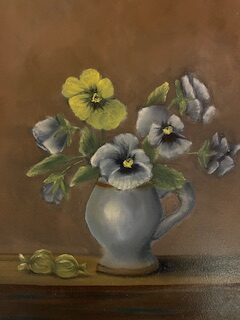 I øjeblikket maler jeg mest i olie, jeg kan lide konsistensen i oliefarverne og de muligheder den lange tørretid giver mig. De første år malede jeg mest stilleben, især blomster og frugter. Arbejdede med lys og skygge. Nu bevæger jeg mig mere over i stemninger og “atmosfærer “. Blomsterne trækker stadig i mig, men i mere impressionistisk form.
